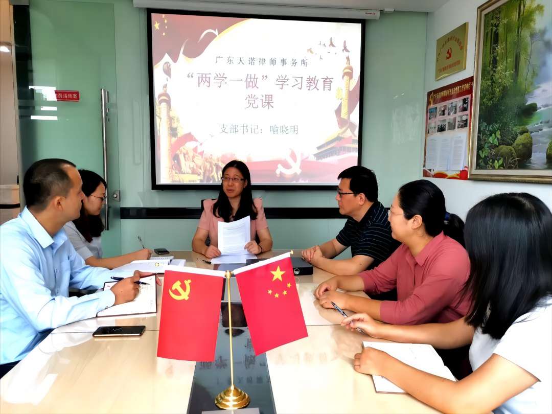 广东天诺律师事务所党支部于2010年10月26日成立,系广州市律师行业党委下属党支部。天诺所党支部自成立以来,始终坚持以“党建带队建,队建强所建,所建促发展”的工作理念,以提升党建质量为抓手,培养了一支德才兼备的党员律师队伍,在全市行业党建、法治社会建设中彰显了基层党组织的力量。2019年天诺所迁址南沙后,不断强化党建引领,持续深化“标杆”创建,积极与中共南沙区黄阁镇党委、广州市南沙区企业和企业家联合会、裕丰钢铁集团公司党委、招商银行南沙支行下属党支部、南沙公证处等单位建立了共建关系。2020年至2022年,天诺党支部连续三年获省律师行业党委授予“省党建工作示范化律师事务所党组织”荣誉称号,多名党员被评为优秀党务工作者或优秀党员。