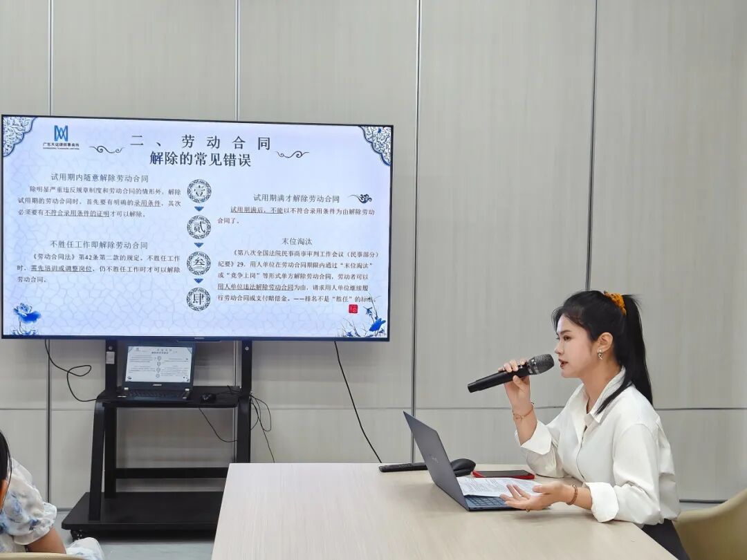 为切实提升青年群体法治素养,增强职场风险防范与依法维权能力,近日,南沙司法所联动南沙街道团工委、广东天诺律师事务所,依托南沙街道青年发展型街区的最“吸粉引流”的公益普惠项目—“青年夜校”平台,推出系列免费专题普法课堂。本所郑萱芸律师作为首期课程的主讲嘉宾,聚焦青年群体高度关注的劳动争议问题,为青年学员们带来了一场以《优化?毕业?法律教你真维权》为主题的法律知识课堂。
