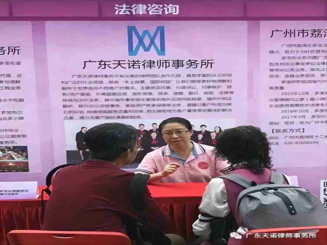 2018年5月13日,广东天诺律师事务所常年法律顾问单位荔湾区女企业家协会举办一年一度的“智扶百千万”母亲节慈善公益大行动主题活动,协会对区内100位单身有小孩的暂时困难母亲每人资助1000元,对暂时没有工作又有工作意愿的,区女企协会的会员单位提供工作岗位。据介绍,本次公益活动为区内的单身母亲送上爱心资助、就业岗位、创业指导、义诊、法律援助、真情拥抱等关怀和服务。活动主题“智扶百千万”是指“百位女性、千元扶助、万份爱心”。荔湾区女企业家协会现场对100位单身有小孩的暂时困难母亲每人资助1000元,对暂时没